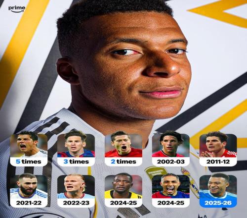 姆巴佩本赛季欧冠进球占皇马全队60%,同期欧冠第二高