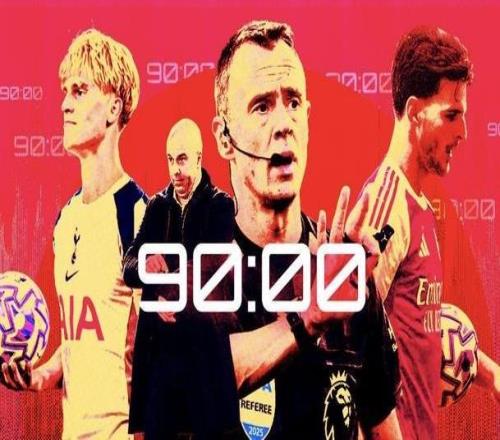 英超本赛季平均每场持续100分36秒,但净比赛时间只有54.7%