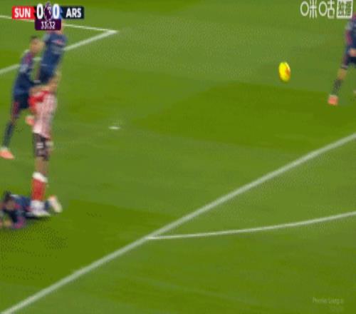 第20分钟,桑德兰连续配合,伯特兰-特拉奥雷突入禁区自己摔倒