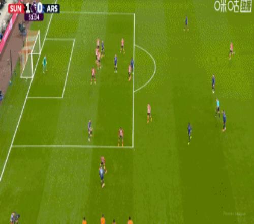 第34分钟,扎卡被判犯规,随后欲找倒地的梅里诺理论