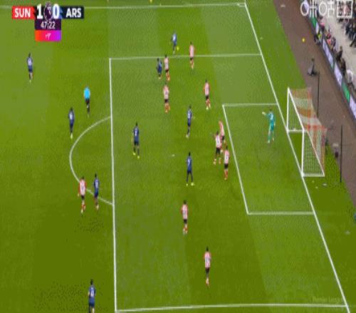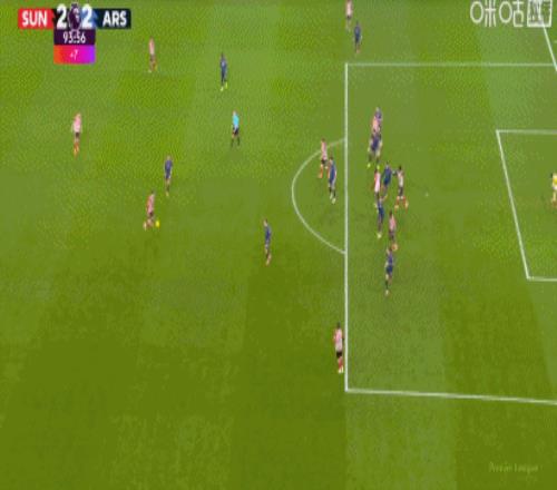 第15分钟,加布里埃尔造定位球,赖斯操刀兜射被扑