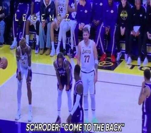 比赛结束大约40分钟后,在湖人主场的内部走廊,施罗德赛后主动去找的,正是东契奇。