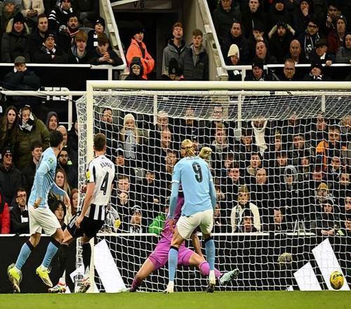 下半场一开始,纽卡再次错过领先的机会,吉马良斯的补射被圣詹姆斯公园球场的球门立柱无情拒绝。2分钟后,曼城全场的首次射正就取得了进球——多库左路突破下底传中,贝尔纳多前点一蹭,中路跟上的塞梅尼奥近距离推射空门得手。